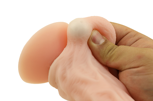 - 亀頭部分はぷにっと摘めるほどの弾力があります。