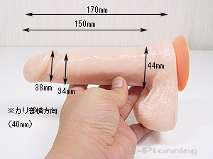 • 質感・造型ともにリアルな少し大きめのディルドーです。吸盤が付いてるので、フローリング床にくっつけて騎乗位。お風呂の壁に引っ付けてバックスタイルなんかも楽しめます。