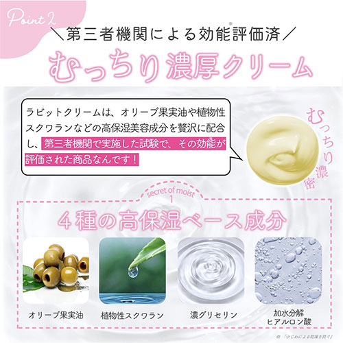 どんな有効な美白(※3)成分も肌のバリア機能が乱れていたら効果を発揮できません!そのためラビットクリームは美白力(※3)と同じくらい「保湿力」にこだわりました。