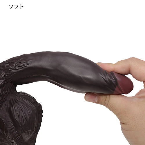 - ソフト:握るとグニャッと簡単に潰れるほど、柔らかい硬度。柔らかいため、じっくりと挿入する必要がありますが、アナルプレイで人気のある素材です。海外某ケモノディルドメーカーの「ミディアム」の硬さに類似しています。