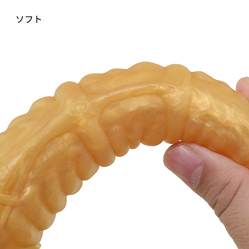• ソフト:握るとグニャッと簡単に潰れるほど、柔らかい硬度。柔らかいため、じっくりと挿入する必要がありますが、アナルプレイで人気のある素材です。海外某ケモノディルドメーカーの「ミディアム」の硬さに類似しています。