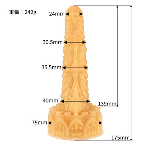 土台部分もこれがディルド? と思わせるデザインは、ドラゴンを操る組織の建物をイメージしています。