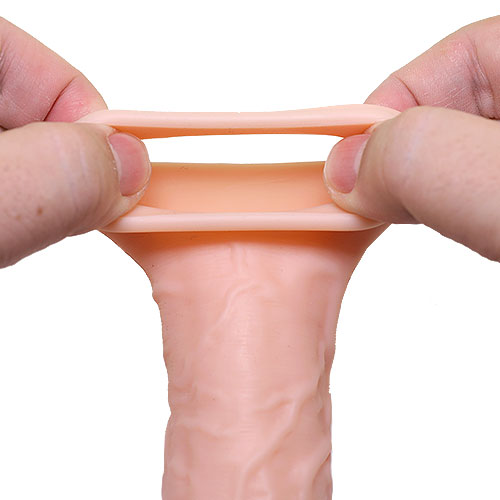 見た目はディルドに見えますが、装着する穴が空いたペニスサックになります。ペニスサックとは勃起力のある方が自身のペニス被せて、太さや長さをサイズアップするアダルトグッズです。