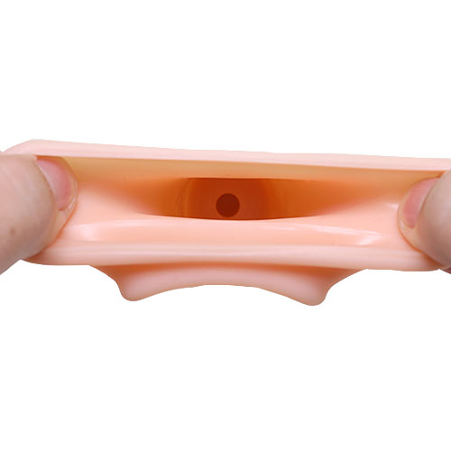 挿入穴は直径2.8cm、奥行が約10cmと勃起していないと装着できません。厚みがあるため装着側への刺激はほとんどなく、パートナーを悦ばせるためのグッズになります。