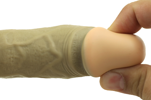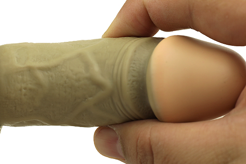 亀頭部は柔らかく、竿部は硬い二重成形を採用し、リアルな挿入感を生みだします。