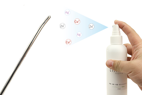 銀イオン、銅イオン、亜鉛イオン3つの金属イオンの力が合わさった複合金属イオンスプレーです。