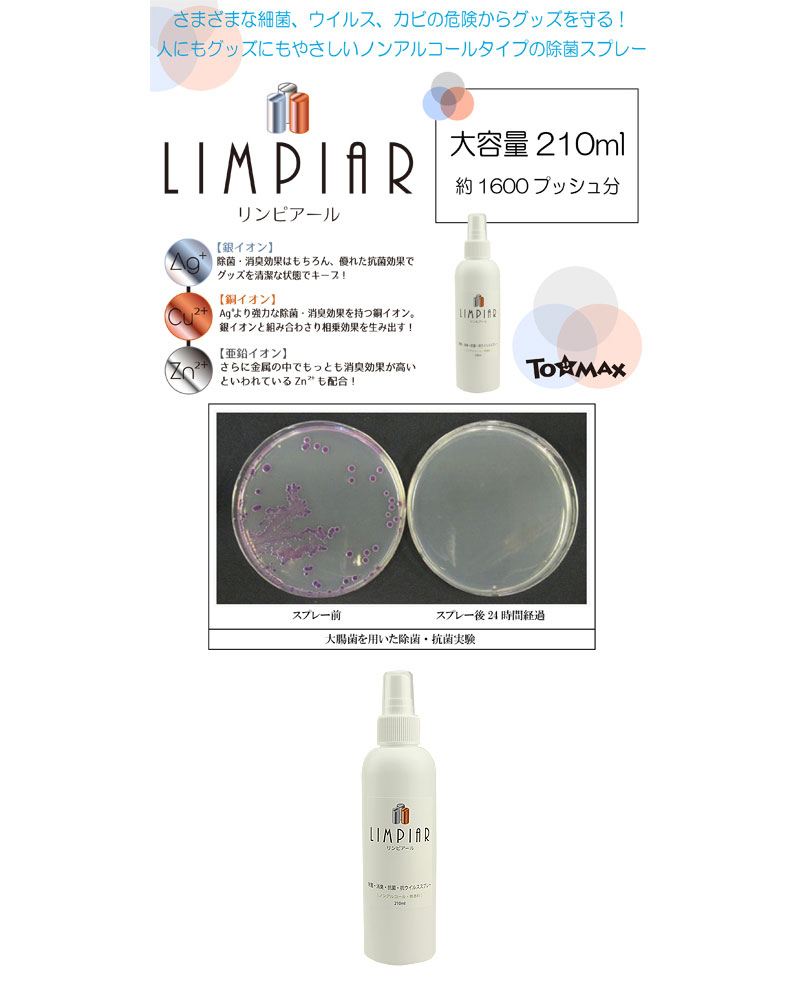 • アダルトグッズをさまざまな細菌、ウィルス、カビから守る除菌・消臭・抗菌・抗ウィルススプレー“Limpiar(リンピアール)”。