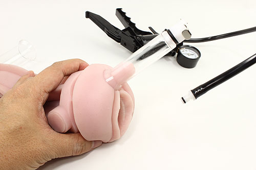 ホースを外した状態でクリトリスを肥大・増大させるために吸引して陰圧保持する器具は良くエロマンガや小説などで出てきますが、(私の知る限り)現在、日本で流通は無い状態だと思います。