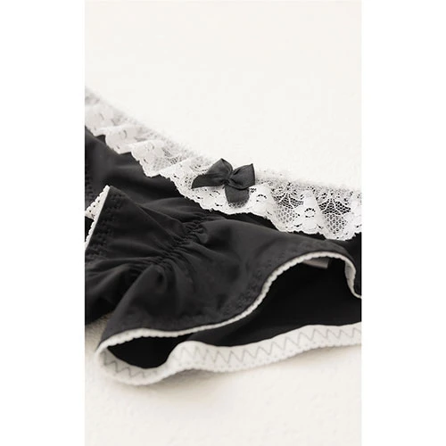 - 伸縮性のある肌触りの良いマイクロファイバー生地を使ったメイドスタイルのローライズショーツです。 クロッチ中央にくい込みゴムを使用した、キュートでセクシーなメイド風デザインのショーツです。