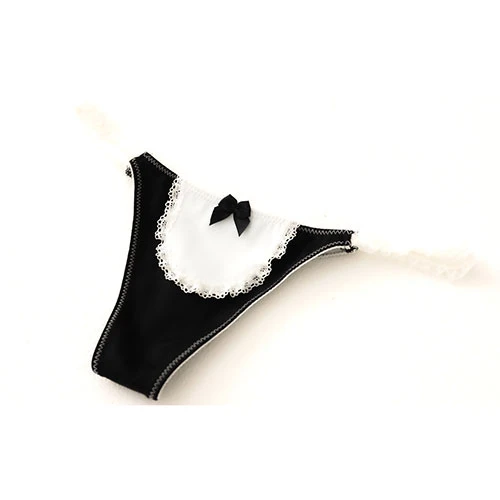 - 伸縮性のある肌触りの良いマイクロファイバー生地を使ったメイドスタイルのTバックショーツです。 小さなリボンとエプロンやレースをあつらえた、キュートでセクシーなメイド風デザインのショーツです。