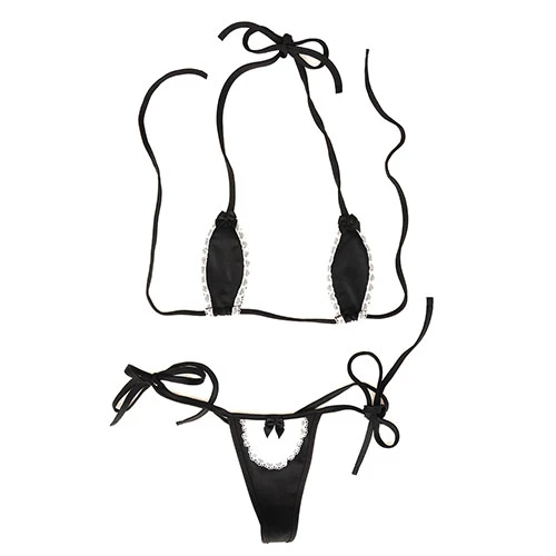 - 伸縮性のある肌触りの良いマイクロファイバー生地を使ったメイドスタイルのビキニセット。 極小のマイクロビキニにメイドらしいレースやエプロンをあつらえた、キュートでセクシーなビキニです。