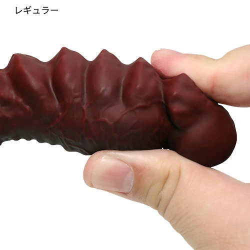 前穴用に使用。レギュラー購入。サイズはもう少し大きめでもよかったかもしれない。(フィットしていて苦しさはなかったので人外感がダウンしてしまった)(ただし普通に楽しむならちょうどいいサイズ)とにかくゴツゴツとした先端が容赦なく膣壁をエグるので本気汁がまるでハニースティックがごとく掻き出されていく(ので、ローションは多めに塗布した方がいいと思う)手に持って使うのと壁に貼り付けて使ったが、壁に貼り付けると奥まで叩きつけた時に亀頭球がさらに広げてくるのでこれがまたたまらない。亀頭球もザラザラとした感触をしているのでナカでもしっかりと形状を感じられて良。手で持って使うのはやや疲れるが先端だけを出し入れし楽しむためには壁に付けるのでは難しかった。(膝が弱いのでスクワットは無理なのだ……)何より出し入れしている間の音がグッチョグッチョといやらしい音で興奮する。人外ディルドに求めている乱暴な音と形だと思う。ただし当然長時間遊んでいると摩擦で痛くはなるので自己責任の範疇で楽しむのが吉。パートナーのペースに合わせてしまうと泣きを見る羽目になると思う。何よりこれで1,000円台は本当にお手頃。人外系ディルドの入門にいいと思う。