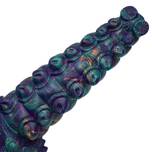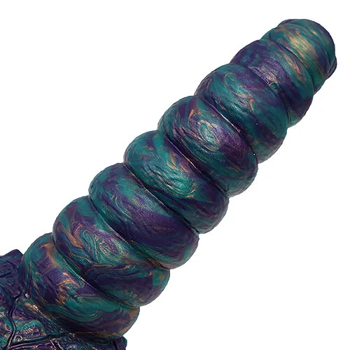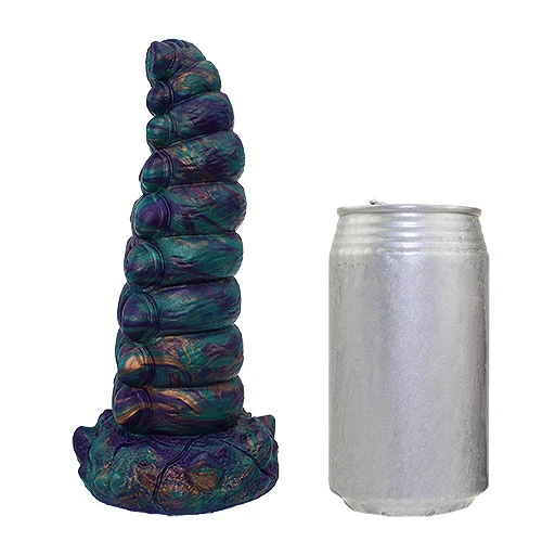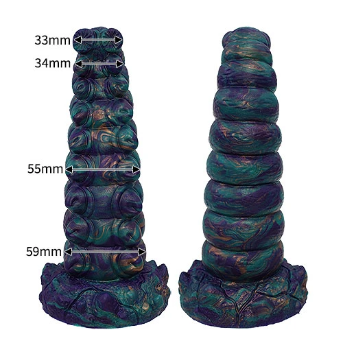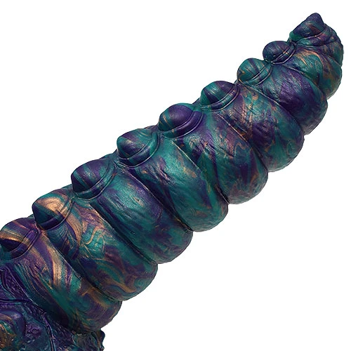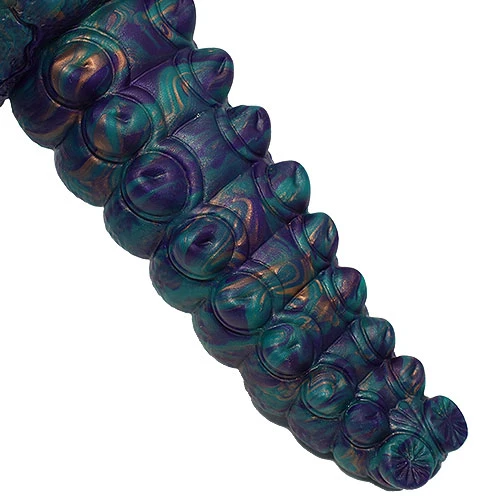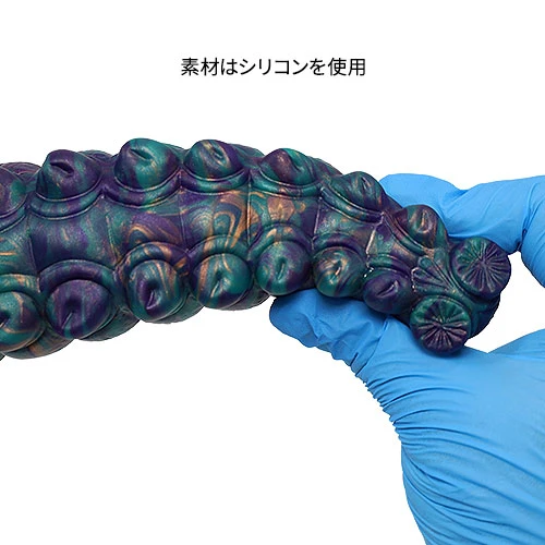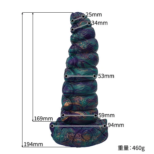 凹凸や脚のような突起による刺激が印象深い人外ディルド。先端から根元にかけて徐々に太くなる形状で穴を押し広げてください。