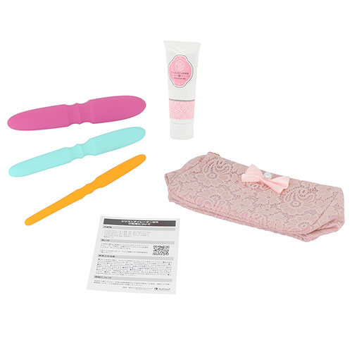 女性らしいデザインが可愛い「ピンク」のポーチも付属し、3本のダイレーターとジェルの一式すべてが収納できるため、どこにでも気軽に持ち運べます。トレーニングは毎日つづけることが大切ですから、こういう配慮はウレシイですね。