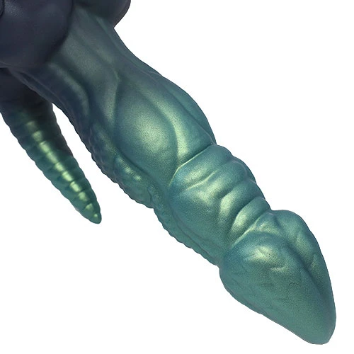 こちらは二足歩行に進化した恐竜がモチーフの人外ディルド。ディルドの土台部分に脚と尻尾が生えたユニークなデザインです。